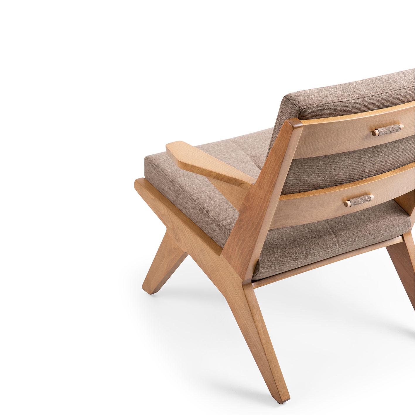 Available in a selection of upholstery fabrics, leathers, and wood or metal finishes, Sandalyeci arm chairs can easily adapt to contemporary or classic interiors. Whether used in dining areas, lobbies, or guest rooms, they offer an inviting presence that enhances the overall atmosphere of the space.