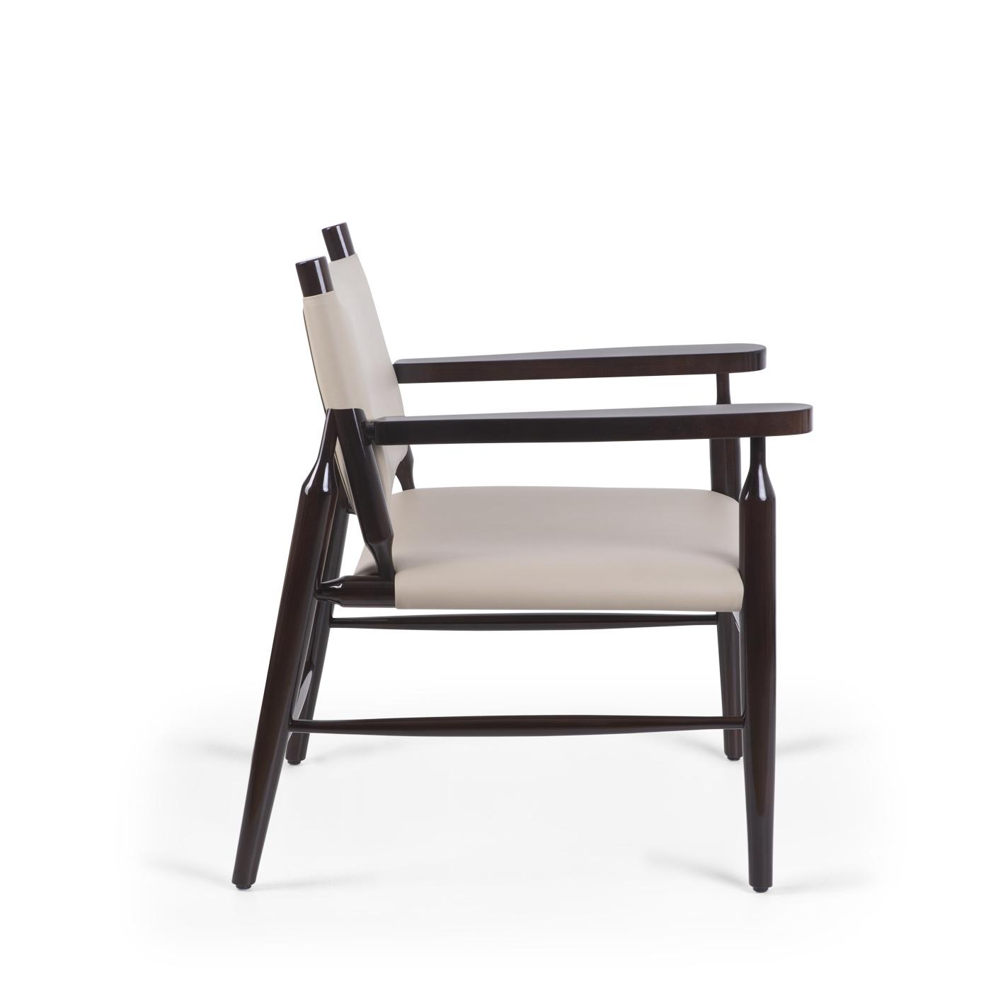 Available in a selection of upholstery fabrics, leathers, and wood or metal finishes, Sandalyeci arm chairs can easily adapt to contemporary or classic interiors. Whether used in dining areas, lobbies, or guest rooms, they offer an inviting presence that enhances the overall atmosphere of the space.